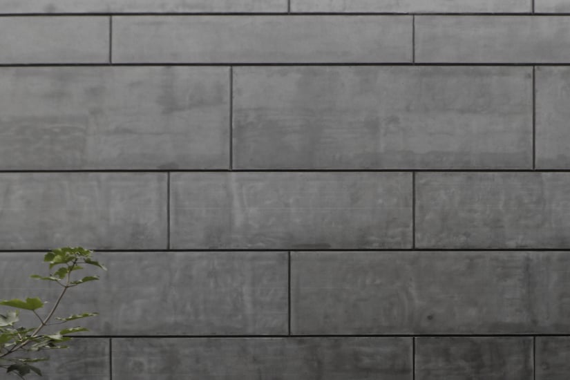 Die Wirkung wird noch von der gewählten Farbe der Außenschale verstärkt, da so die dunklen Schattenfugen in den Hintergrund treten. Die Außenplatte der Fassade ist als anthrazitfarbene Carbonbetonplatte ausgeführt. Damit kann ein hoher Absorptionsgrad erreicht werden, der durch eine rasche Erwärmung der Flächen am Morgen, die zusammenhängenden Zeiten mit zu hoher Luftfeuchtigkeit senkt, welche zu Algen- und Pilzbildung auf der Fassade führen können. Somit kann auch diese hochgedämmte Bauweise Bedingungen realisieren, die ähnlich der einer Altbaufassade ausfallen, ohne Pestizide einsetzen zu müssen. Dies ist mit den herkömmlich verwendeten WDVS-Systemen nicht möglich.